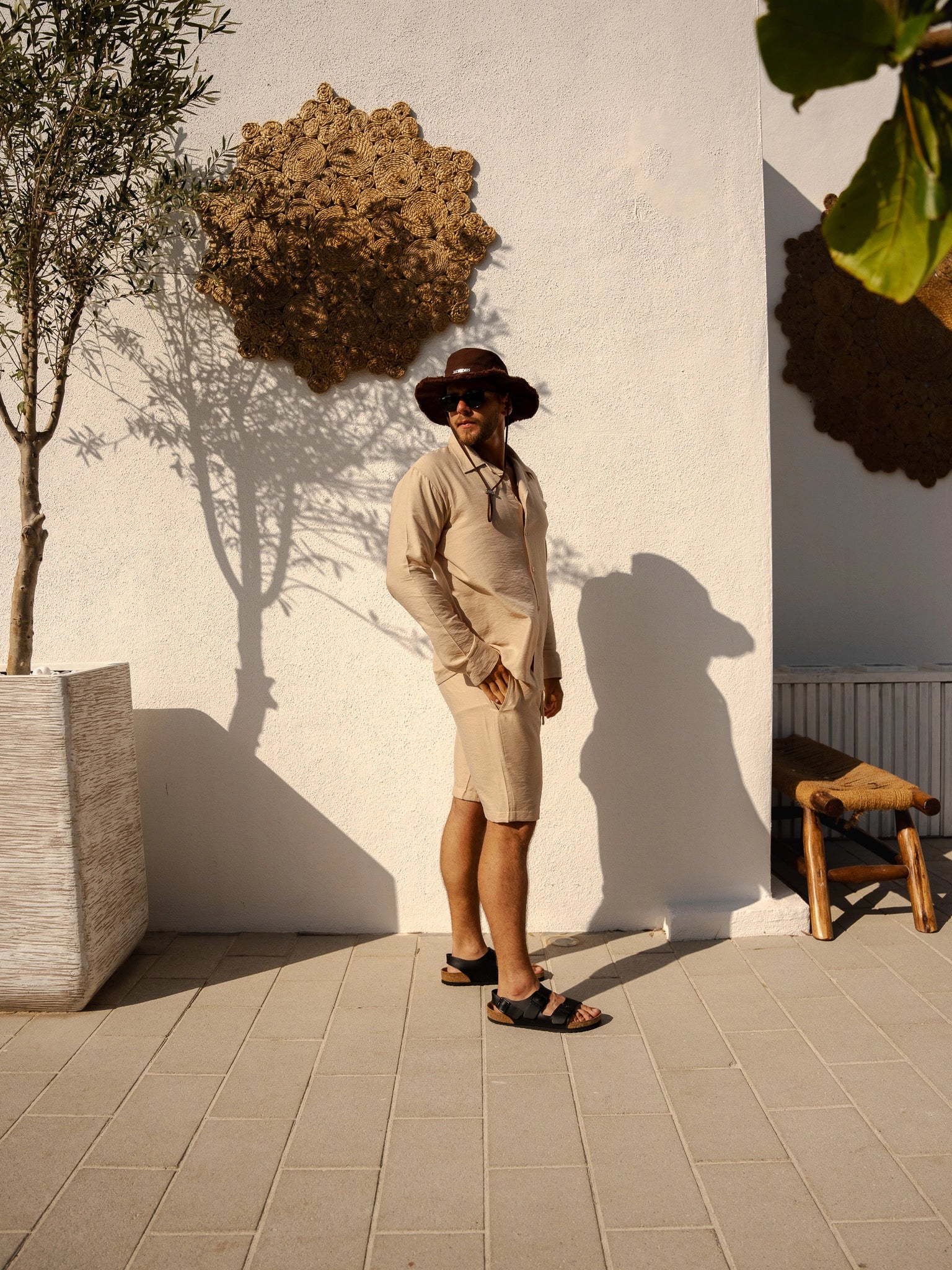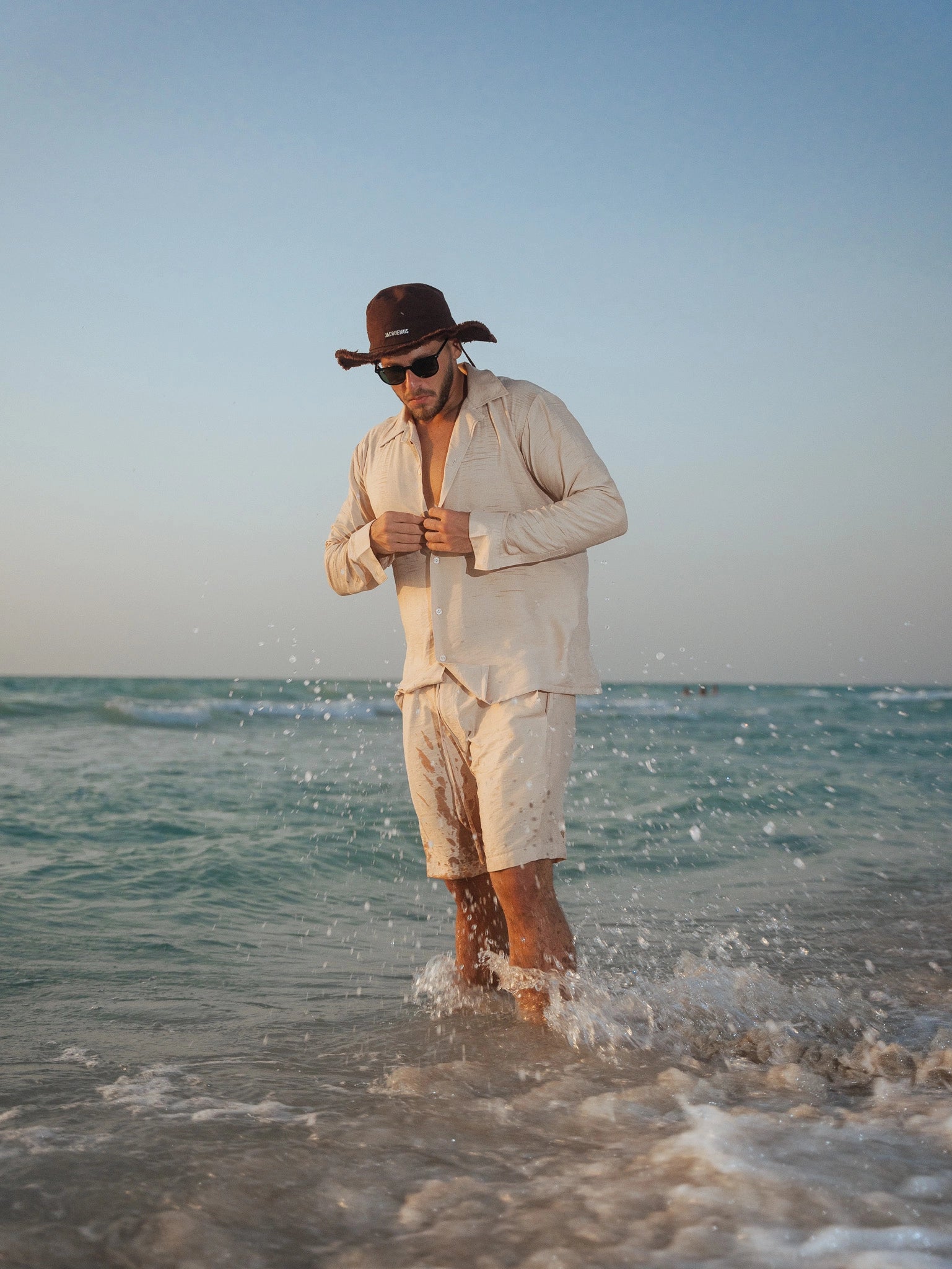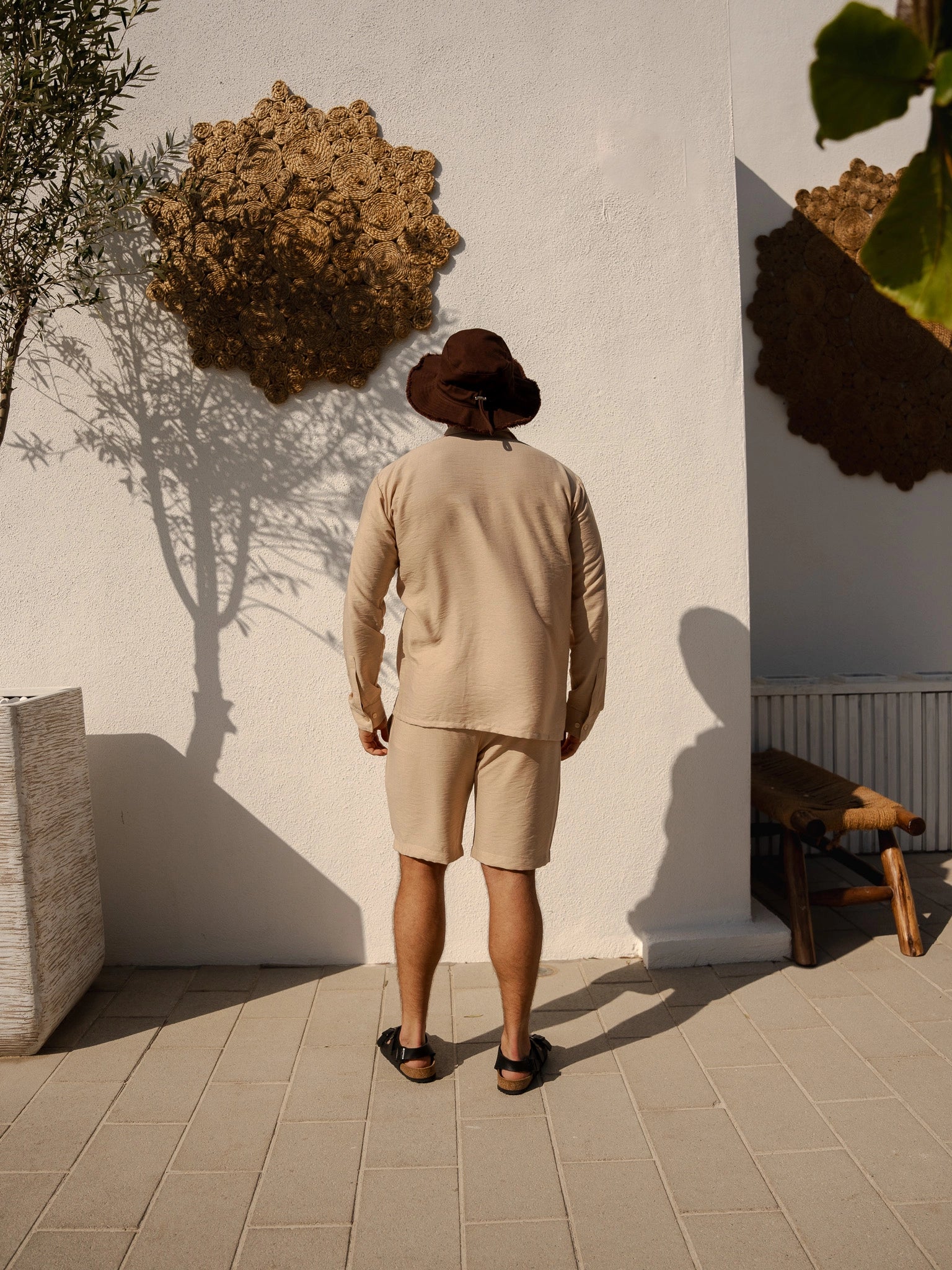 Presenting the Breeze Linen Set, the ultimate level of stylish comfort for guys. This outfit, which is made of fine linen, includes fitted shorts and a long-sleeve button-up shirt in a sophisticated and adaptable beige color. This set is a wardrobe must since it seamlessly blends style and comfort, making it appropriate for any occasion.