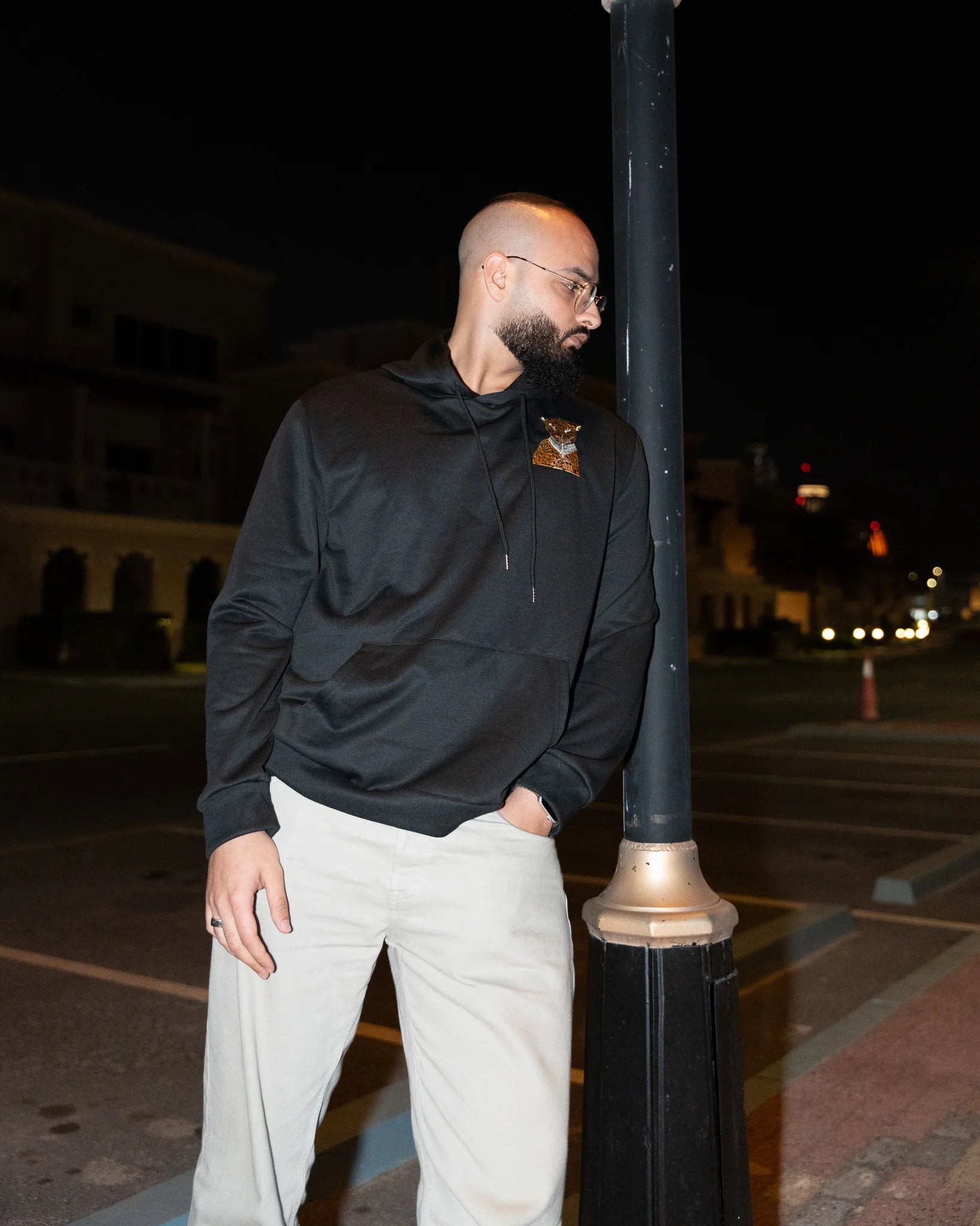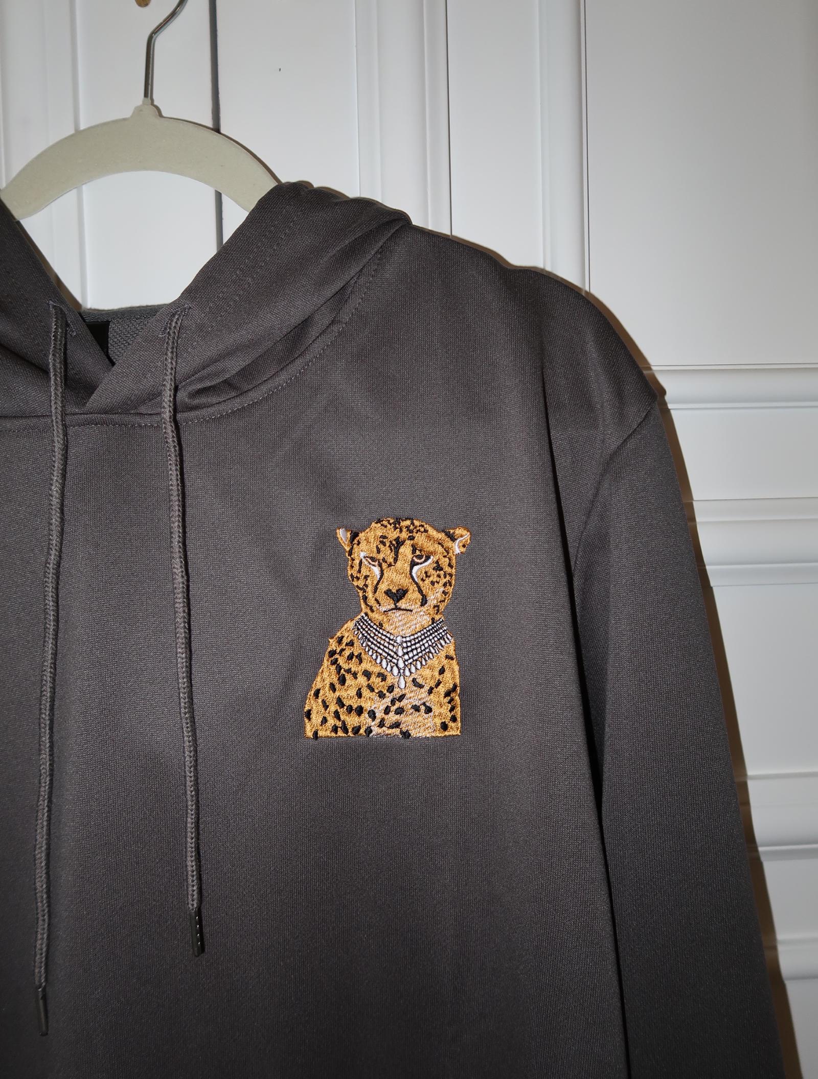 The standout detail? A beautifully embroidered cheetah motif, symbolizing strength, speed, and elegance. Inspired by desert aesthetics, the earthy tones make it a versatile piece that pairs seamlessly with any wardrobe.