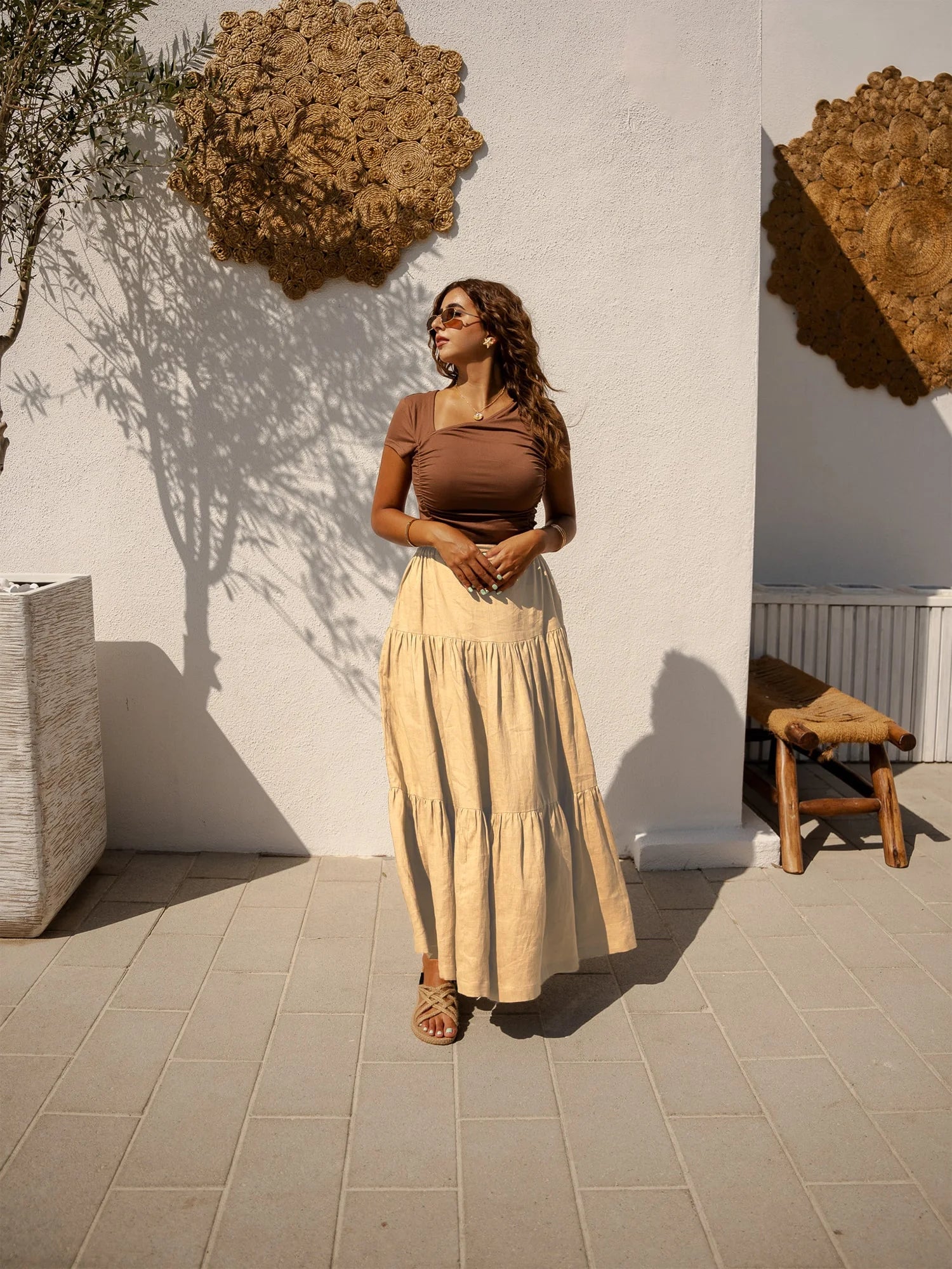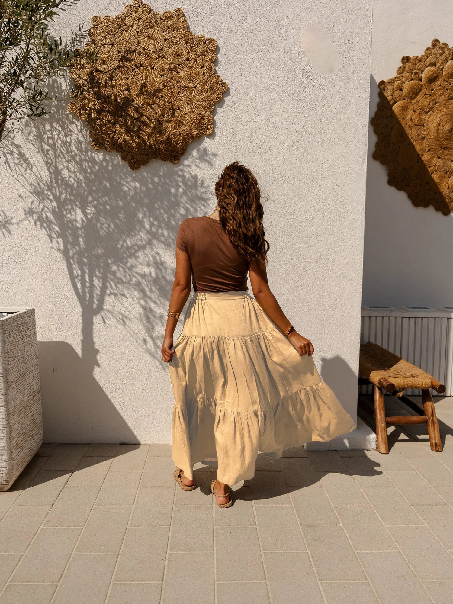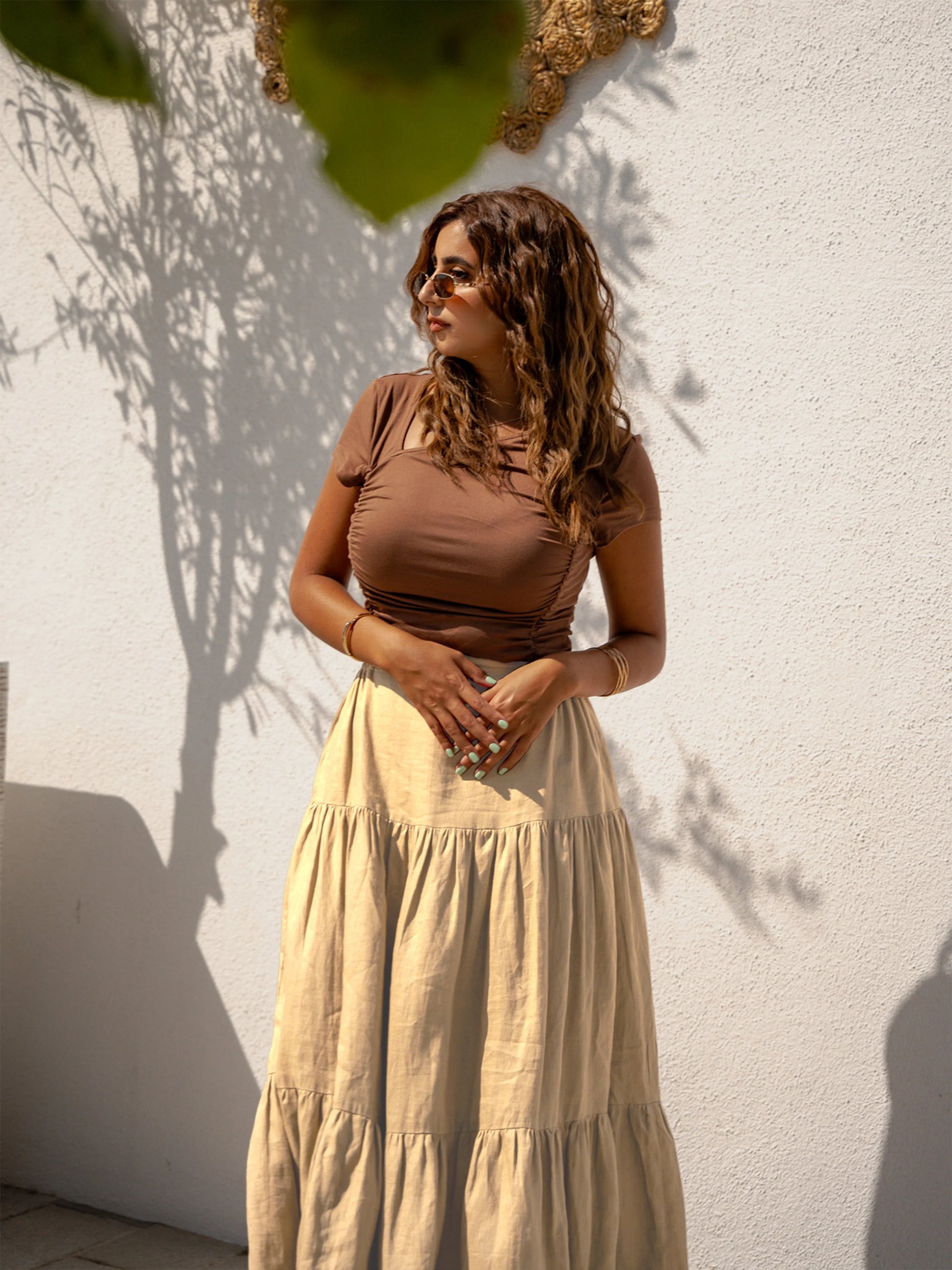 Wearing our Golden Hour Skirt in soft beige linen will take you to a world of carefree style. Designed to embody effortless elegance, this maxi skirt is appropriate for any setting and any occasion. This skirt will quickly become your go-to item for both stylish and casual outfits thanks to its flowing design and premium materials.