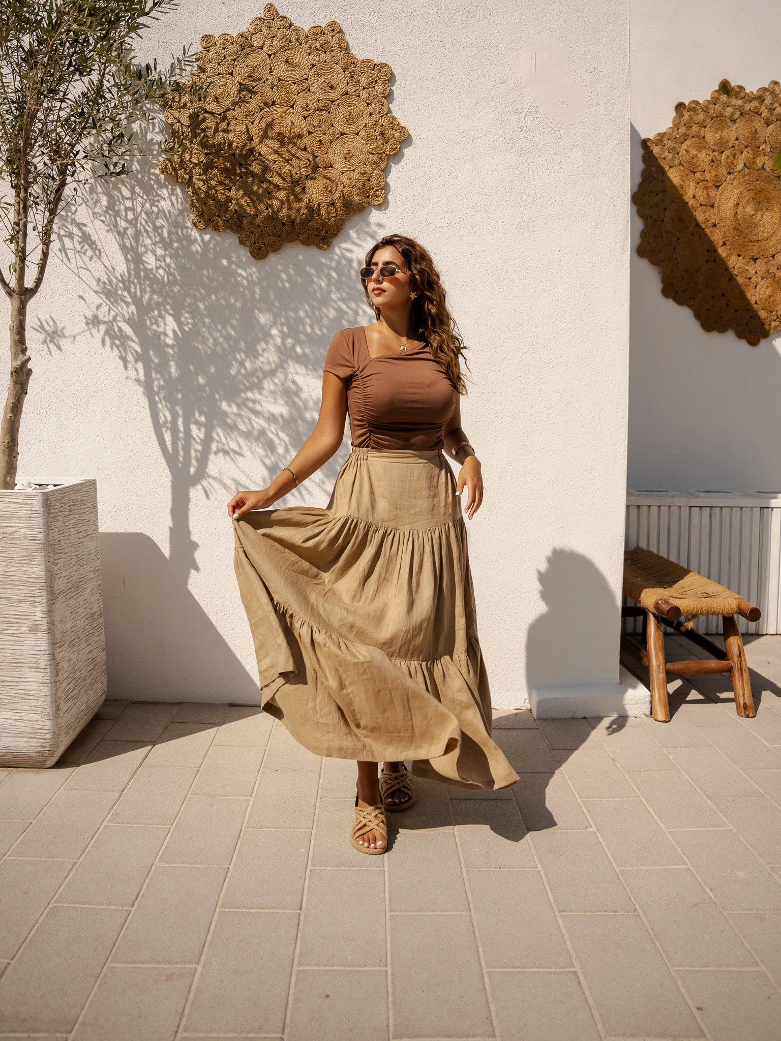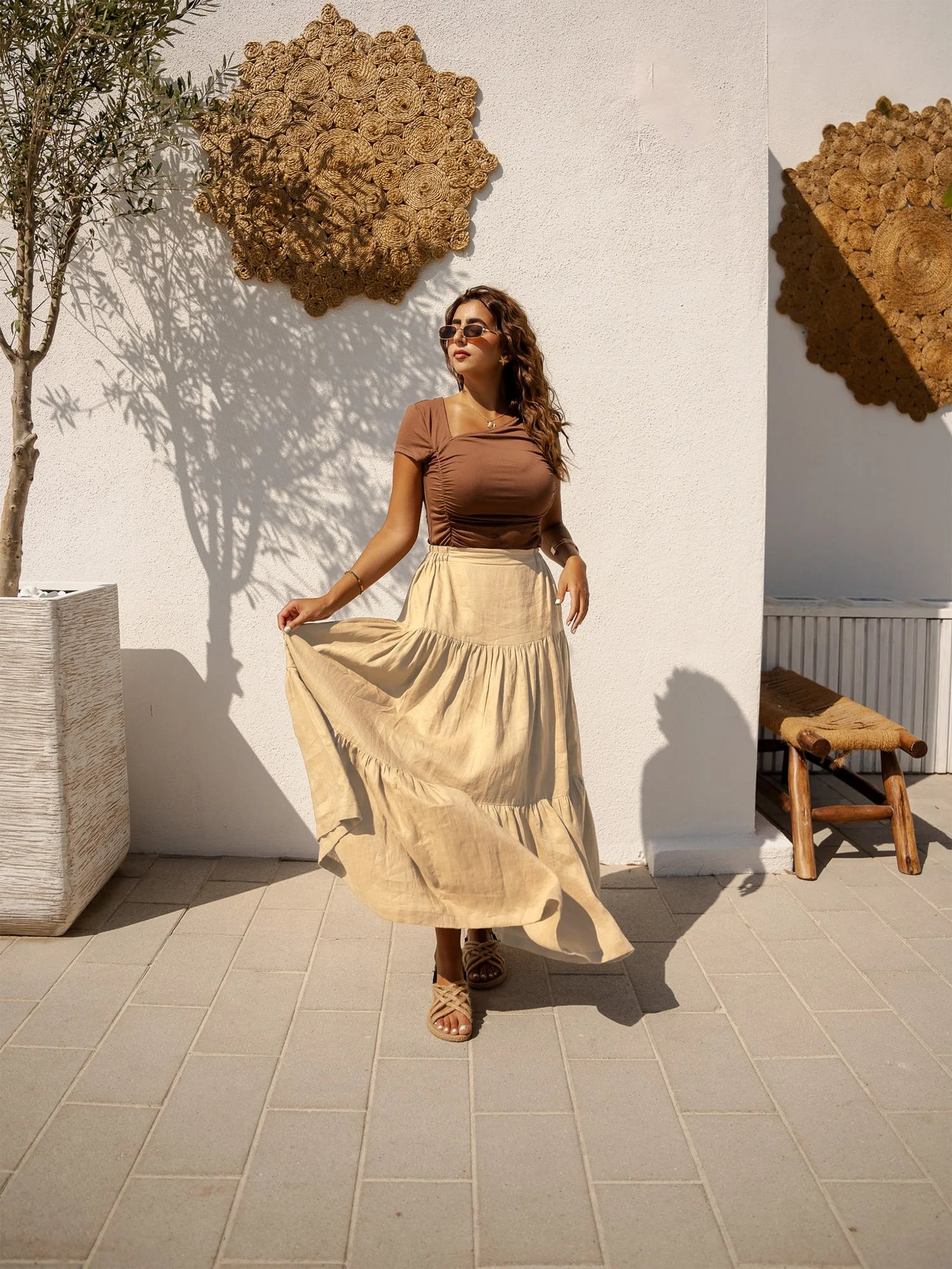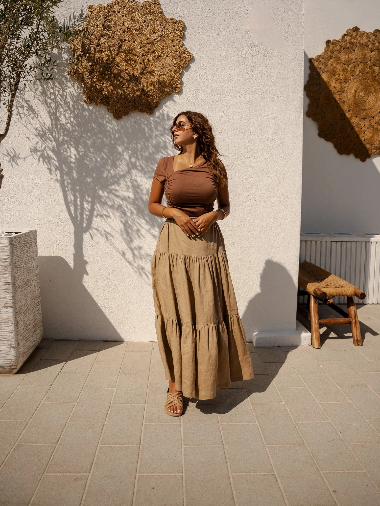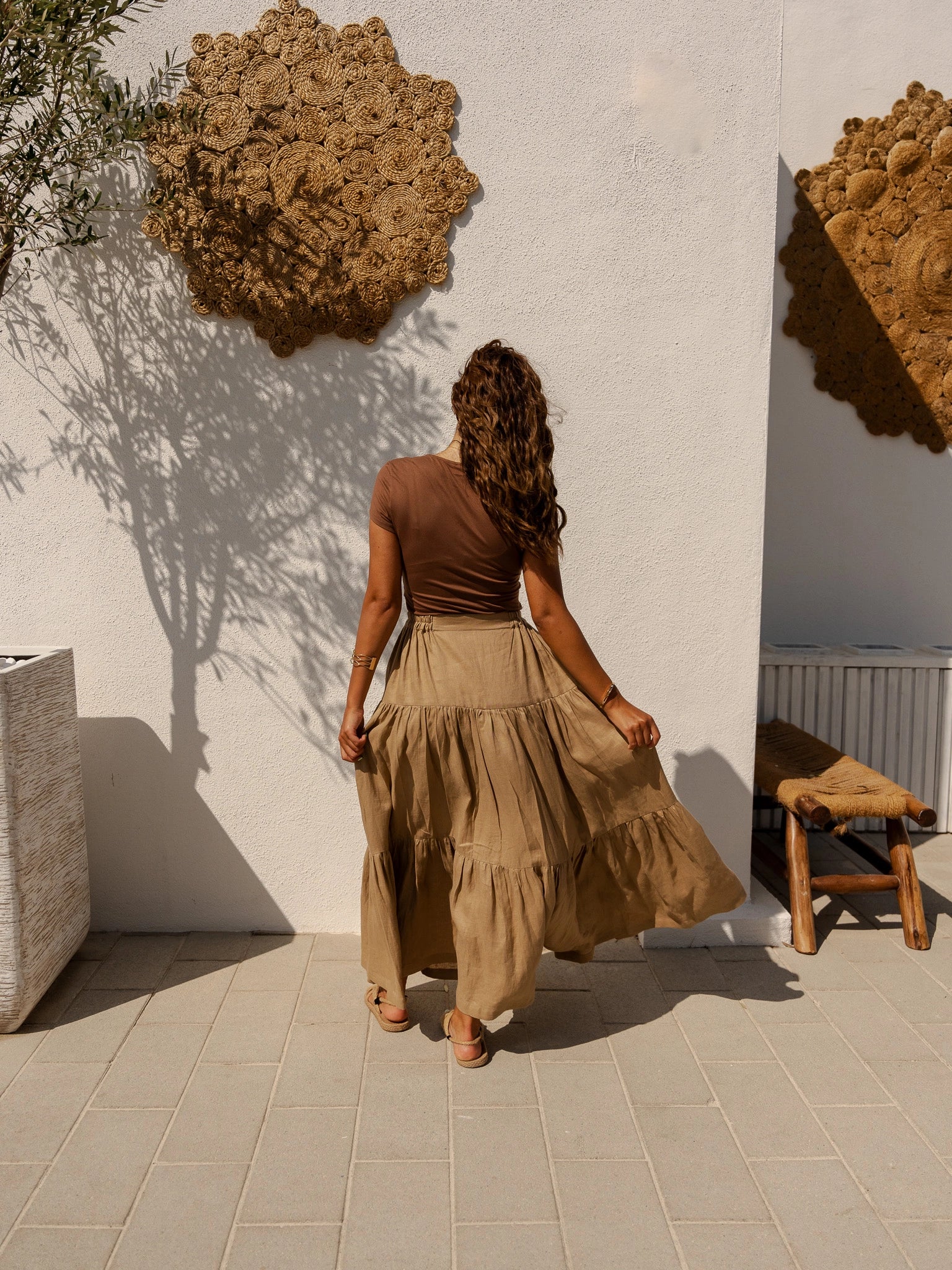 Wearing our Golden Hour Skirt in soft beige linen will take you to a world of carefree style. Designed to embody effortless elegance, this maxi skirt is appropriate for any setting and any occasion. This skirt will quickly become your go-to item for both stylish and casual outfits thanks to its flowing design and premium materials.