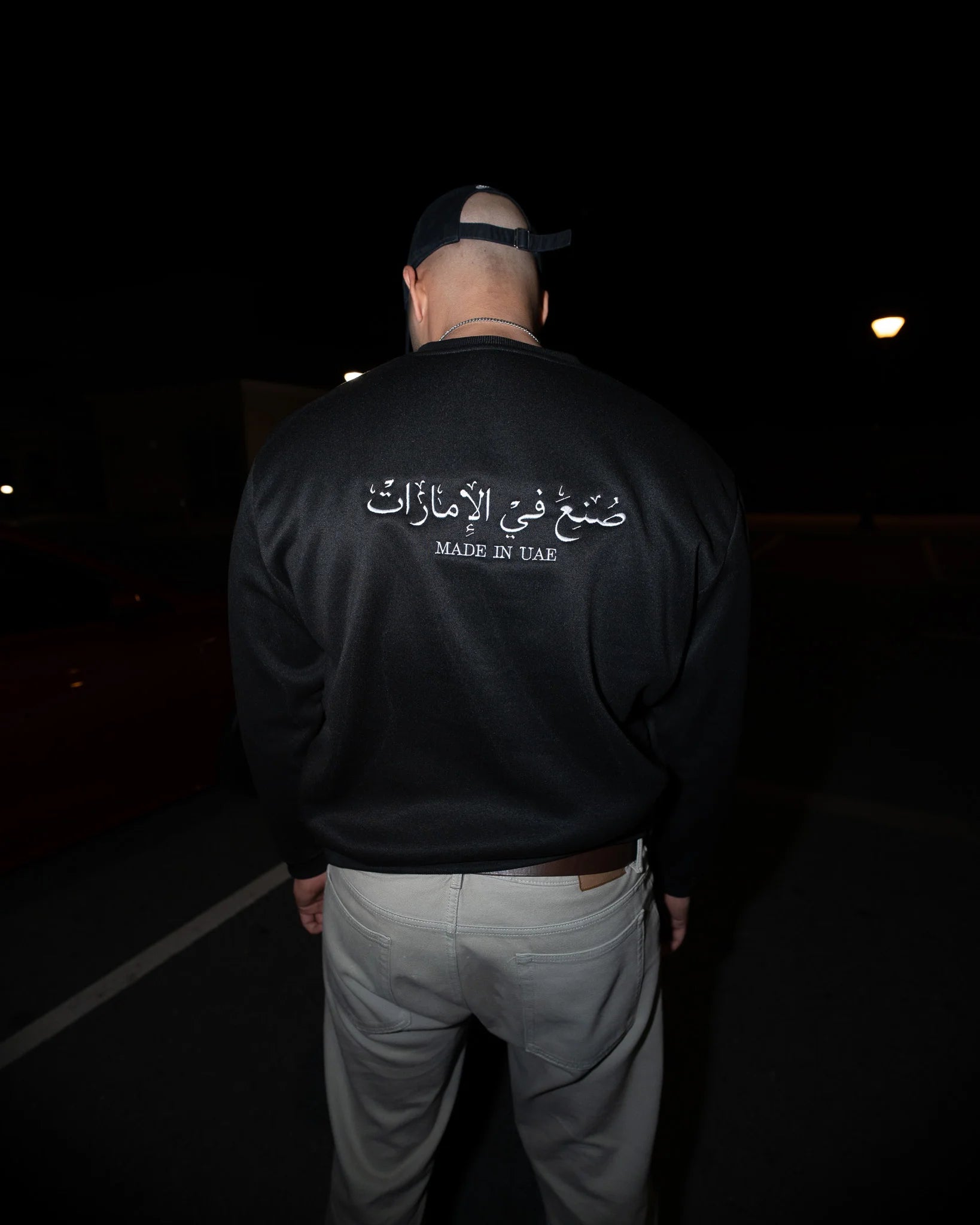 Show your pride and support for the UAE with the "Made in UAE" shirt. Crafted from premium black fabric, this shirt features bold, sleek lettering in both Arabic and English, making a statement that celebrates local craftsmanship and heritage. With its comfortable, unisex fit and simple yet meaningful design, this shirt is perfect for anyone looking to represent the UAE in style.