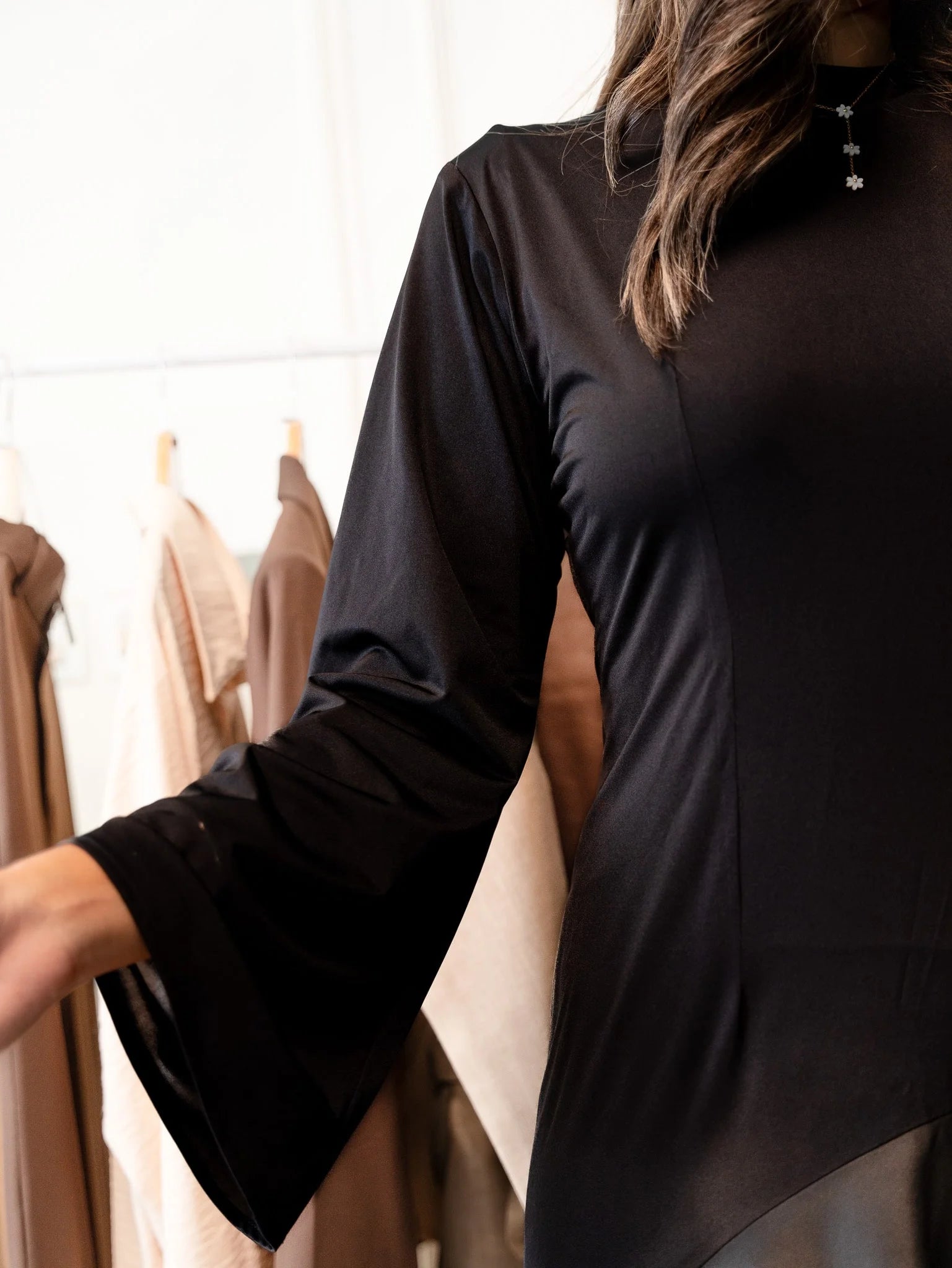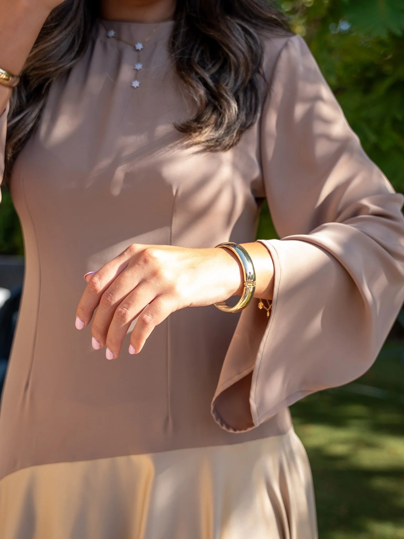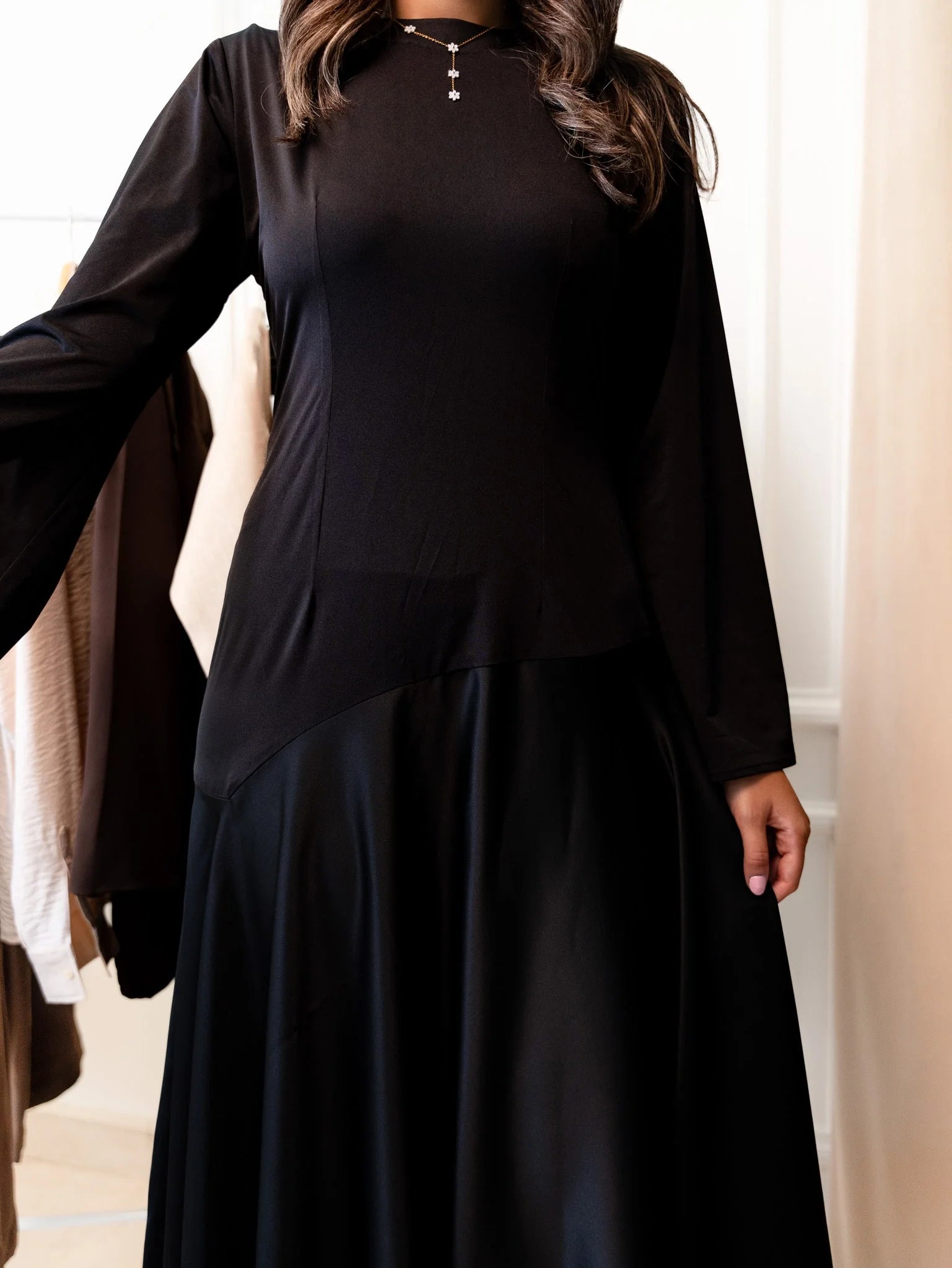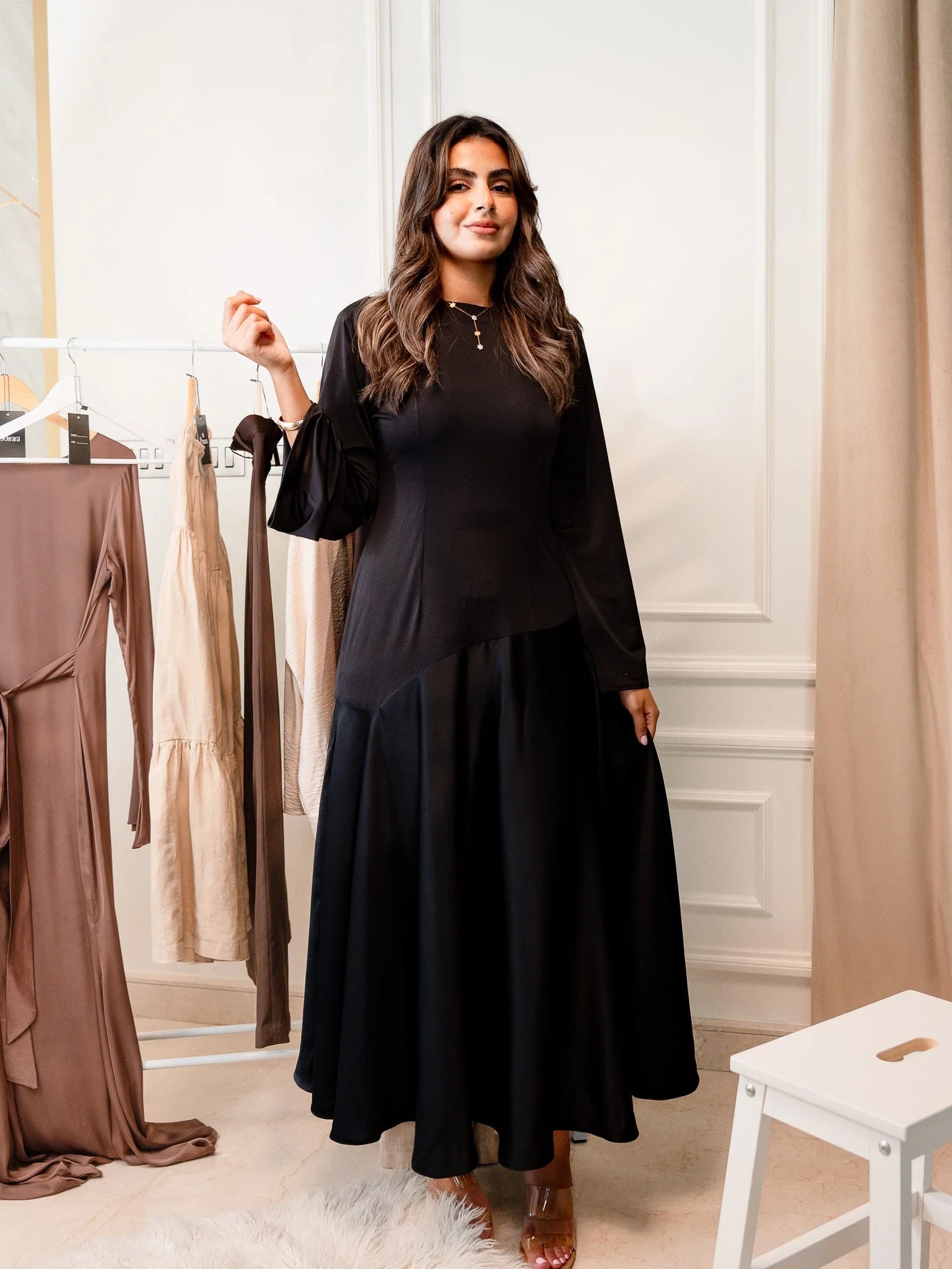 - Crafted from high-quality sustainable materials, our dress combines luxury with environmental responsibility. The shiny material adds a subtle shimmer, elevating its allure.