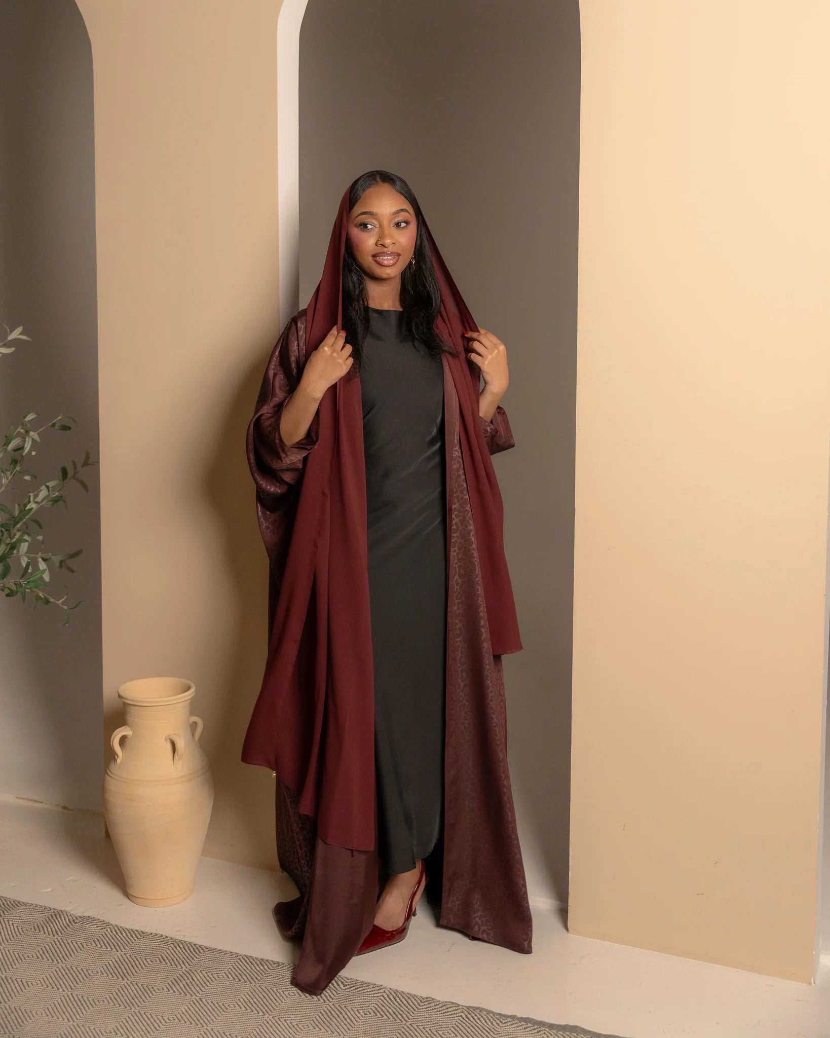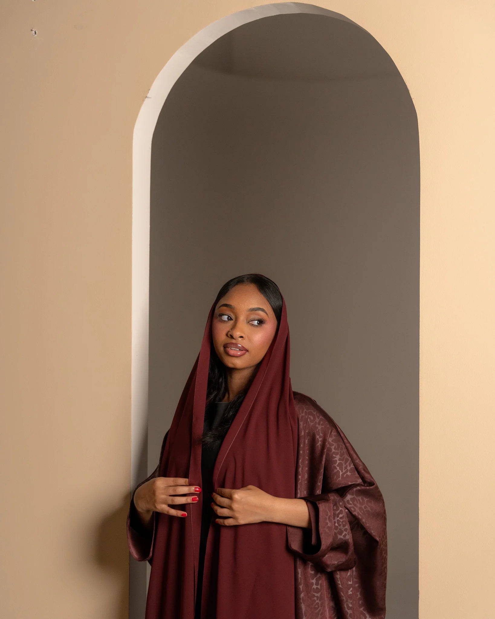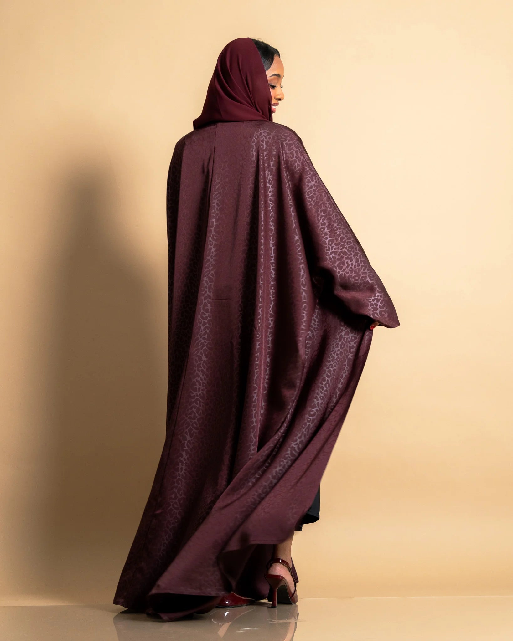 Unleash your bold side with the Leopard Red Satin Abaya, blending fierce prints with luxurious sheen. Crafted from silky satin with a striking red hue and leopard-patterned accents, this abaya is designed for confidence and elegance.