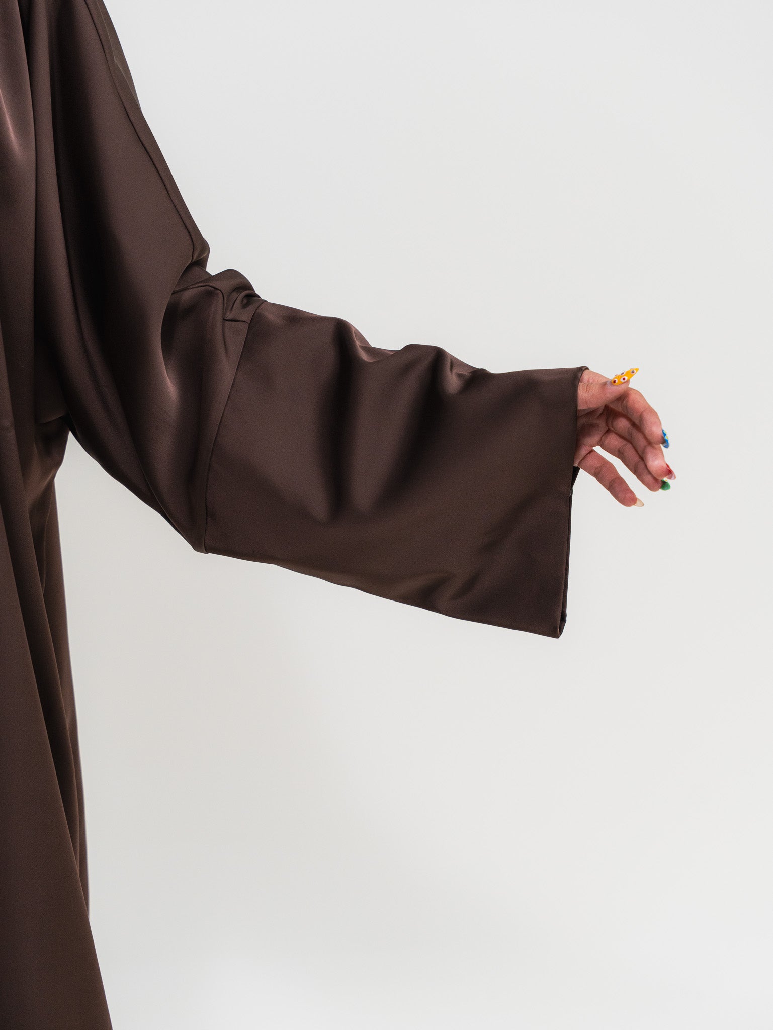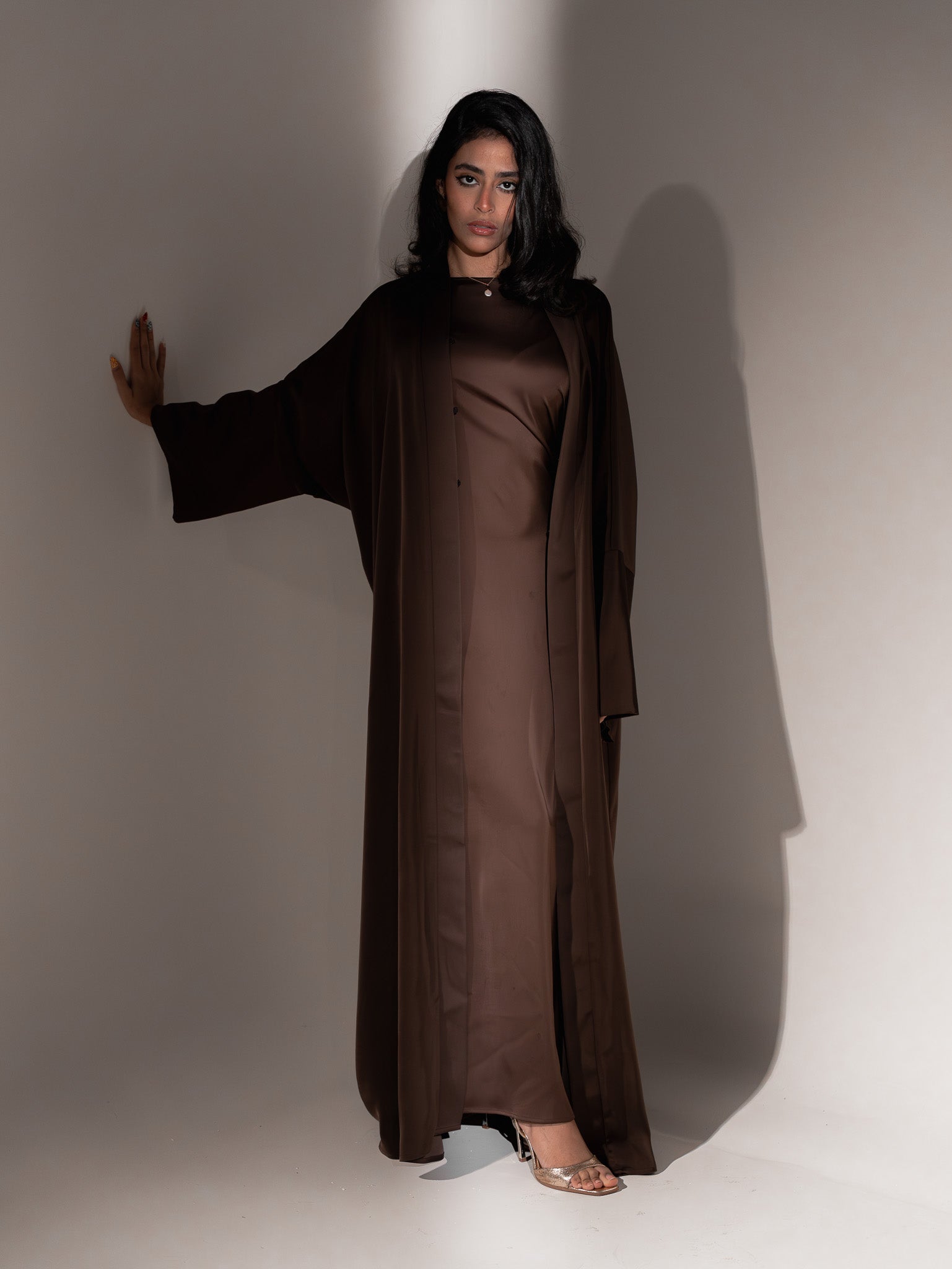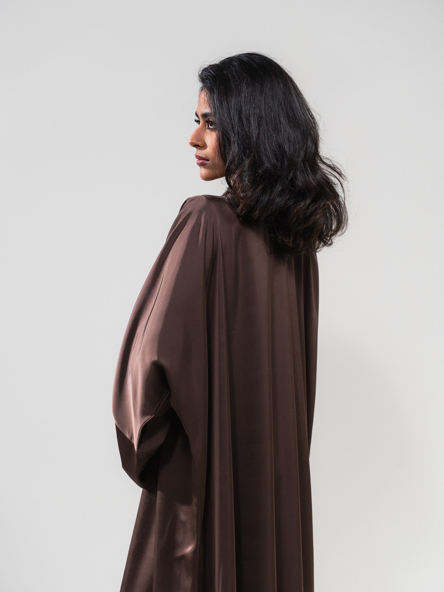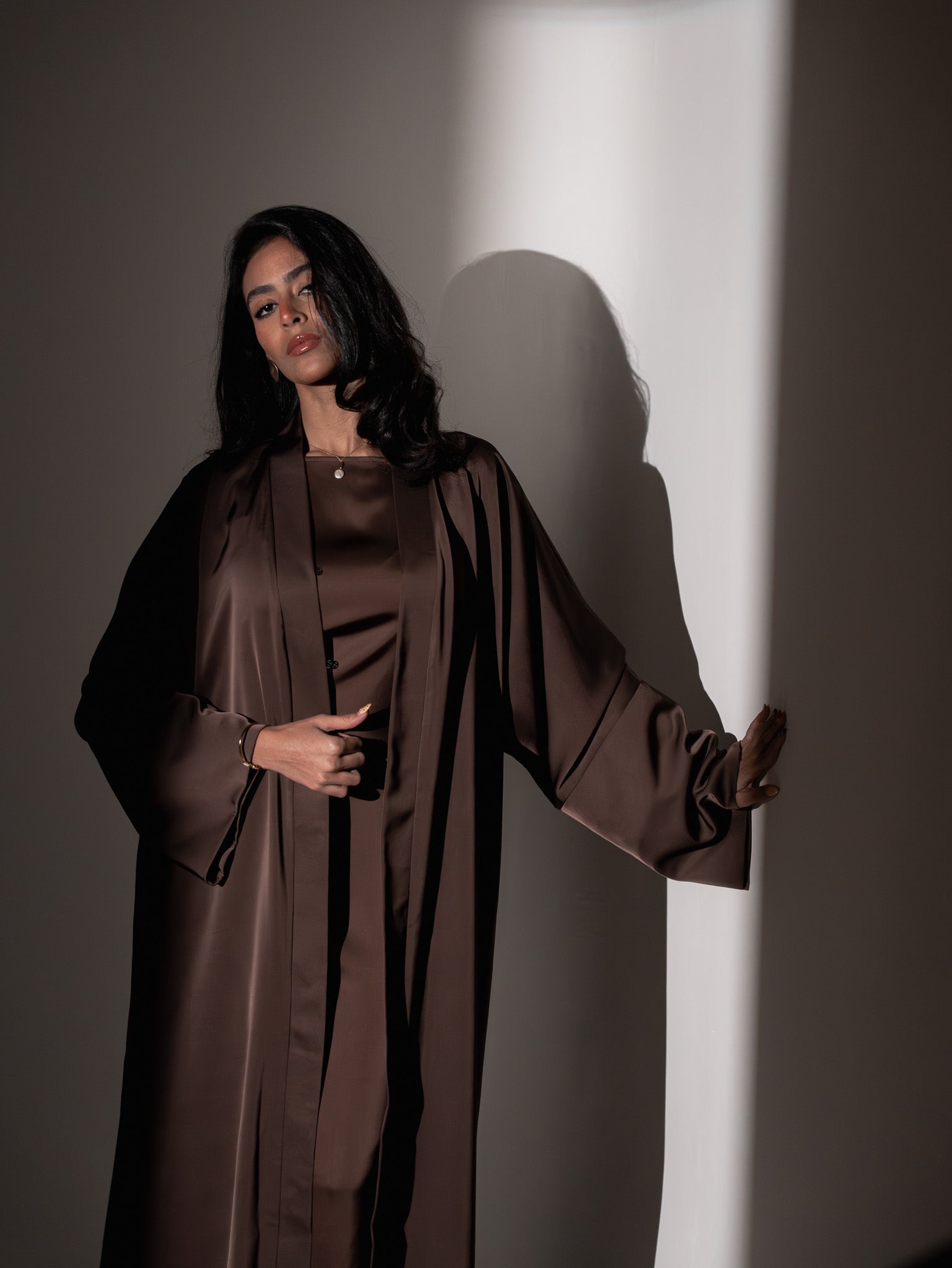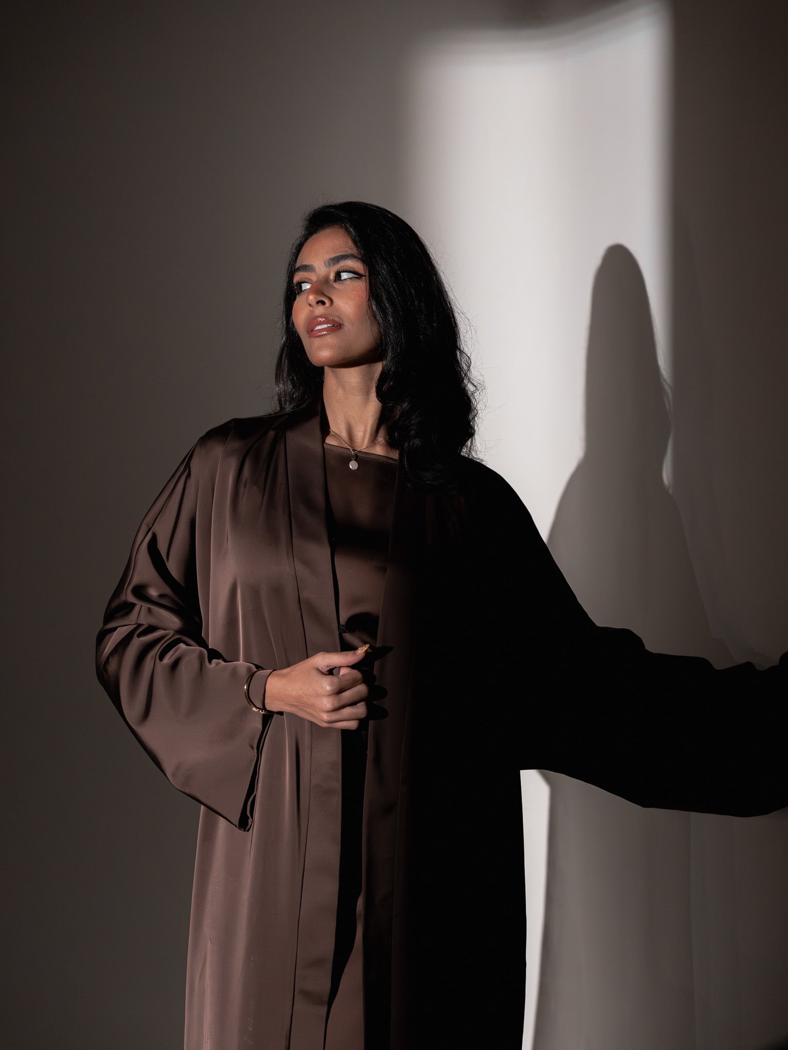 A tribute to understated sophistication, The Arabica Flow Abaya captures the essence of modern luxury through movement, tone, and texture. Crafted from lustrous satin, its silhouette flows effortlessly with every step, evoking the smooth richness of freshly brewed Arabica.